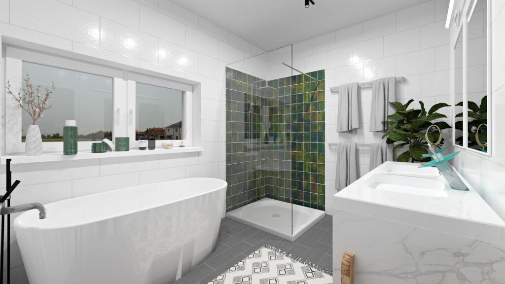 • Bad mit Doppelwaschtisch, Badewanne UND begehbarer Dusche