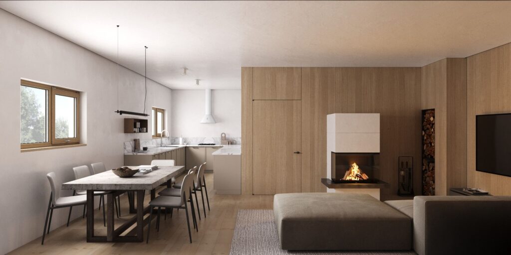 Das Haus ist mit Elektro- Wasser- und Abwasserinstallationen ausgestattet, es wird je nach gewähltem Ausstattungs-Paket teilweise oder gänzlich möbliert geliefert.