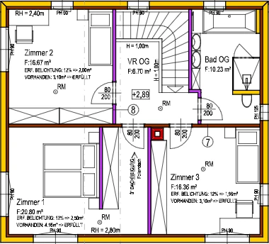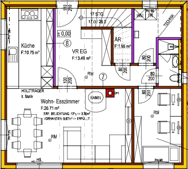 *es besteht die Möglichkeit, die Wärmedämmung zu verbessern, dafür wird die innere Oberfläche des Hauses verkleinert und die Abmessungen einiger Möbel reduziert werden (zusätzliche 5 cm Isolierung in Wänden und Dach)